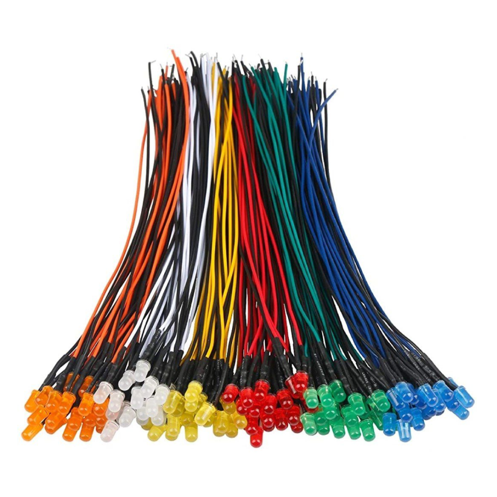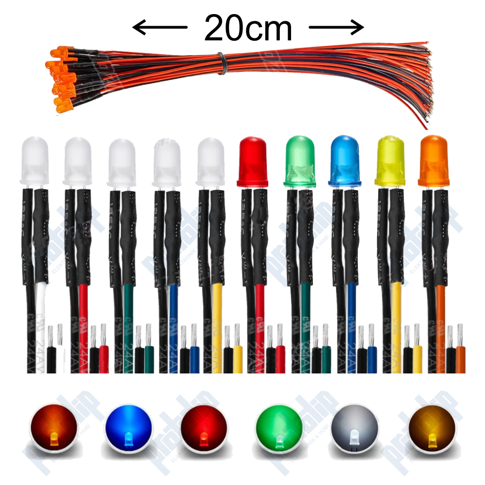 12V 5mm Difüz LED - 20cm Renk Uyumlu Kablolu