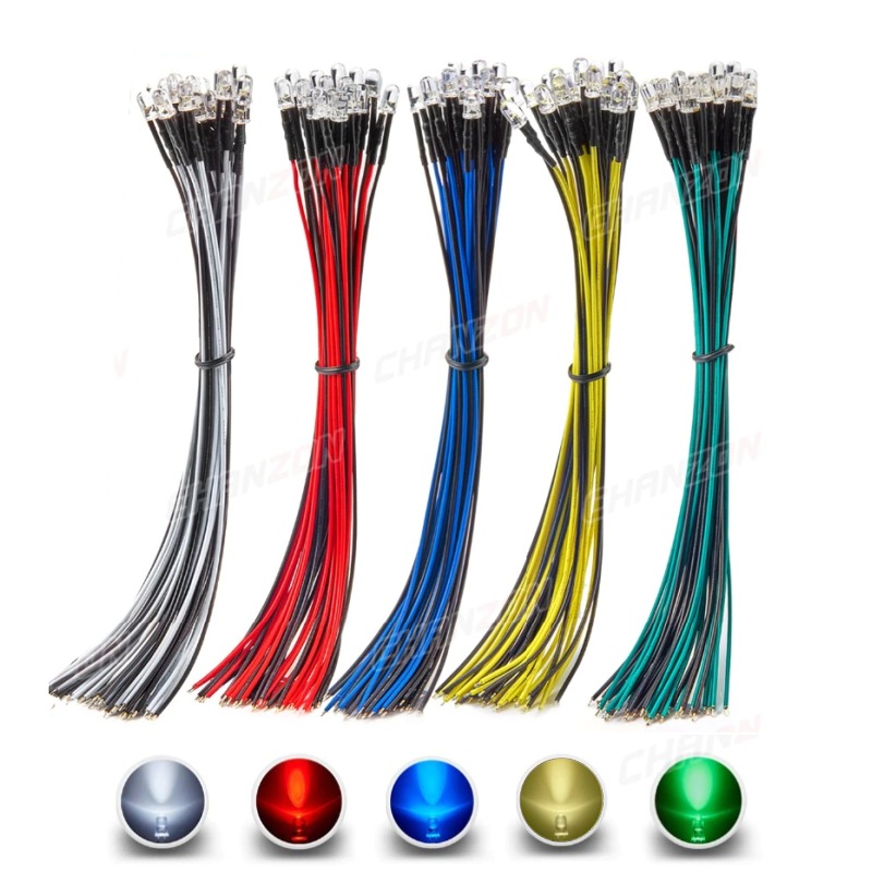 12V 5mm Şeffaf LED - 20cm Renk Uyumlu Kablolu (Parlak Işık)