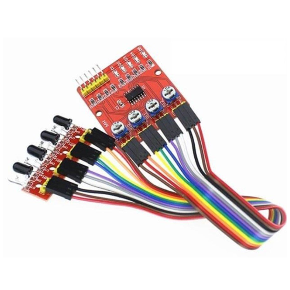 Hızlı bir çizgi izleyen robot yapmak istiyorsanız, tek veya çift sensör genellikle yeterli olmaz; robot virajlarda çizgiyi kaybedebilir. 4 Kanal Çizgi İzleyen Sensör Modülü, yan yana dizilmiş 4 adet TCRT5000 kızılötesi sensörü sayesinde çizgiyi çok daha geniş bir alanda tarar.