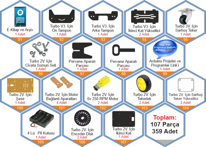 Neden "Turbo Black V3"? Piyasada gördüğünüz standart şeffaf veya sarı robot gövdelerinin aksine, bu sette Özel Kesim Siyah Pleksi Şasi kullanılmıştır. Robotunuz bittiğinde çok daha profesyonel ve güçlü görünür. Ayrıca V3 (Versiyon 3) olması, set içerisindeki parça sayısının 349'a, çeşitliliğin ise 107'ye çıkarıldığını; en güncel modüllerin sete eklendiğini gösterir.