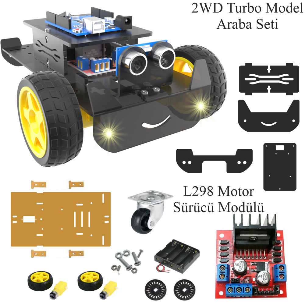 Arduino Uno R3 Turbo Black V3 Başlangıç Seti (2WD Araba Dahil - 349 Parça)