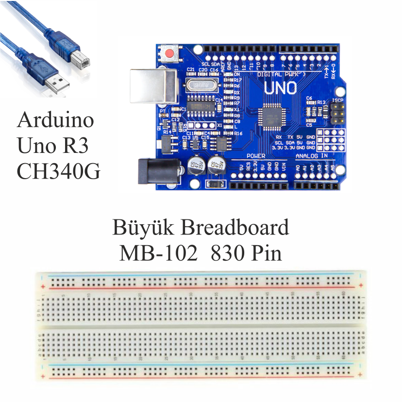 1 x Arduino Uno R3 (Klon - CH340 Çipli) + USB Kablo