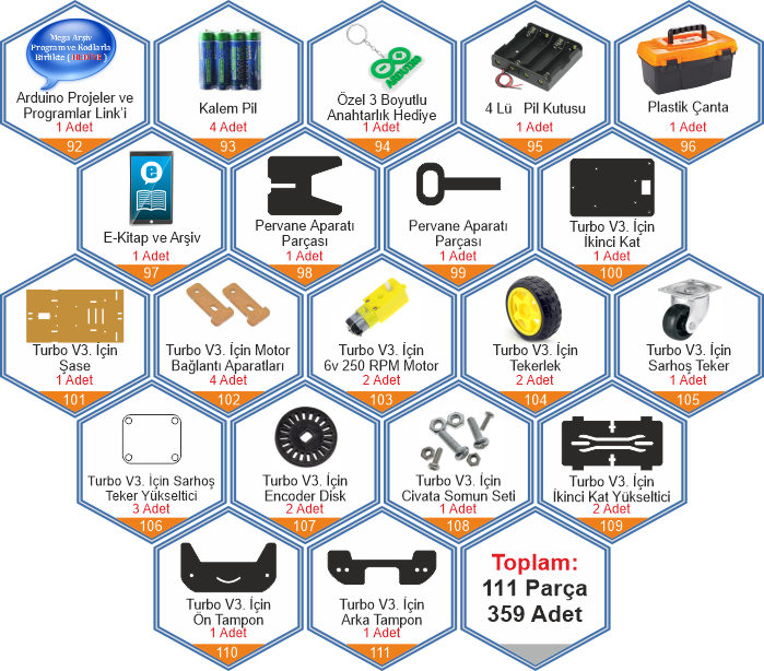 359 Parça Dev Ordu: 112 farklı başlık altında toplanmış 359 adet parça ile "Şu sensörüm eksik" deme şansınız kalmaz. Piyasadaki en dolu setlerden biridir.