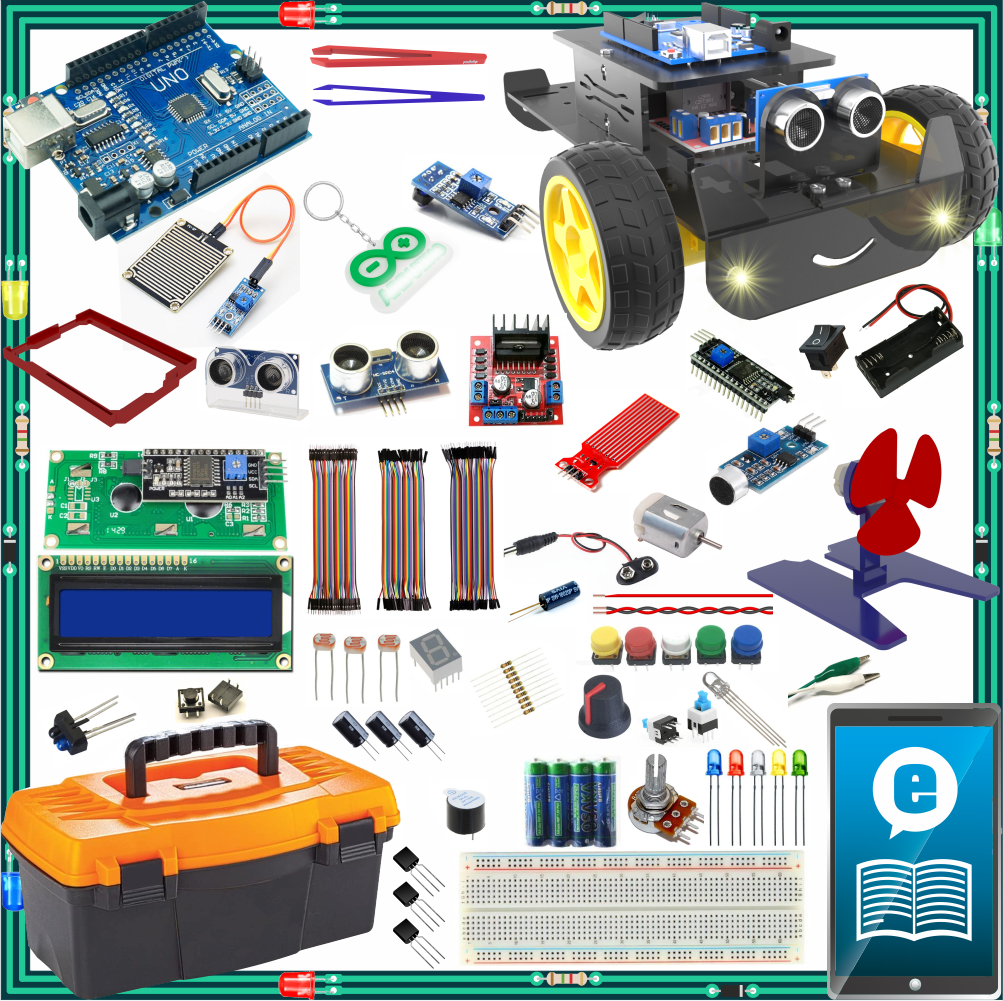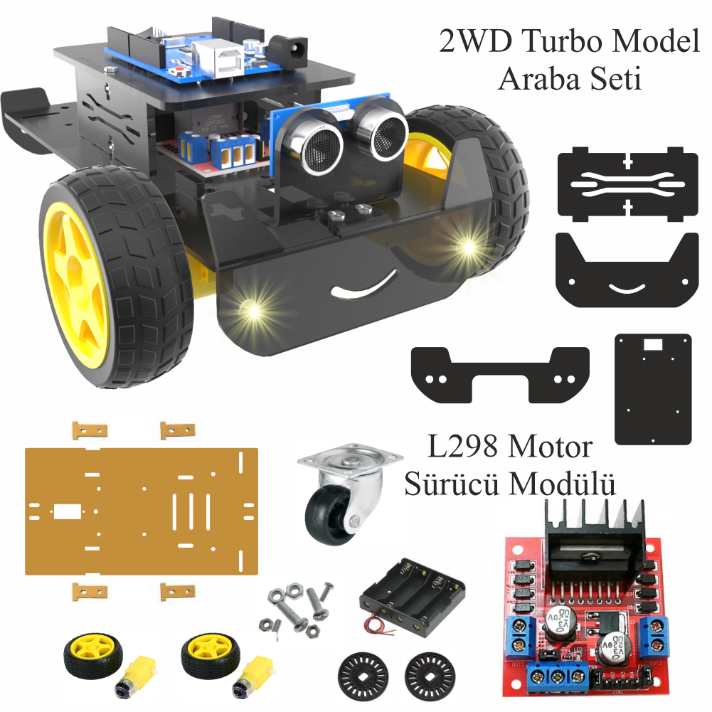 Arduino Başlangıç Seti UNO R3 Turbo Black V3 (2WD Araba Dahil - 359 Parça)