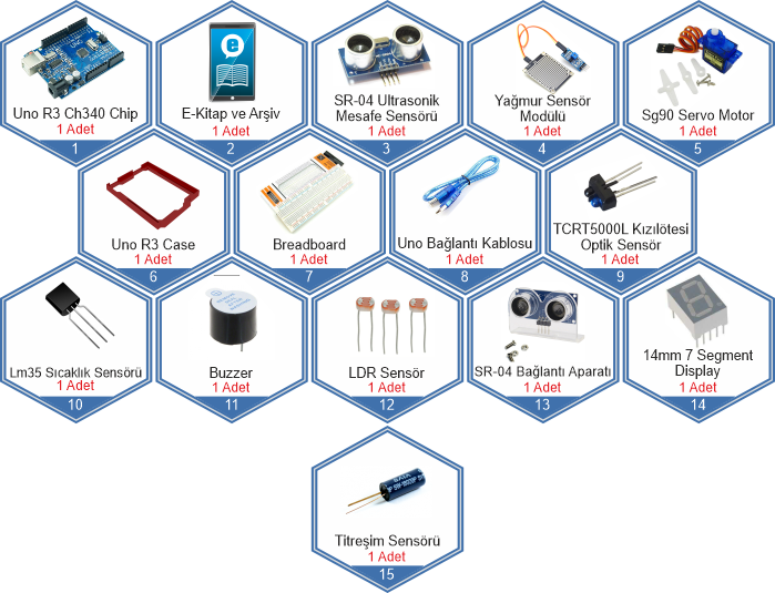 Bu set ile sadece basit devreler kurmakla kalmaz; mesafe ölçen, ses algılayan, sıcaklık ölçen veya uzaktan kumanda ile yönetilen akıllı sistemler tasarlayabilirsiniz.