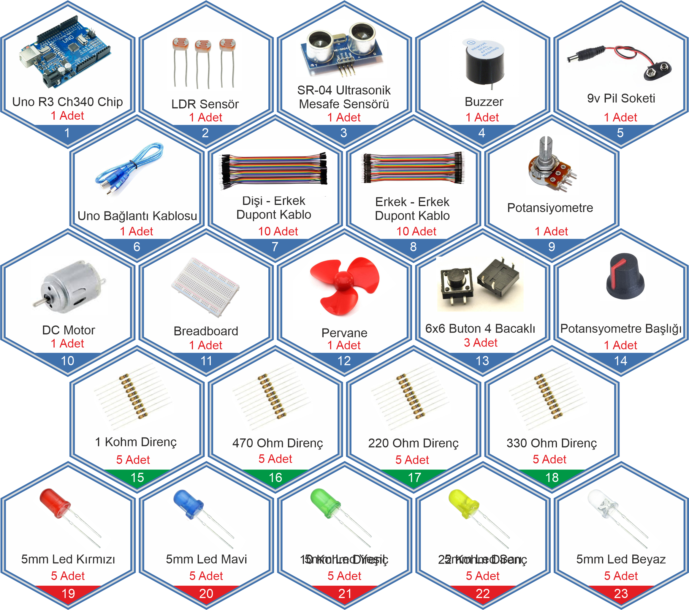 Arduino Temel Kodlama Başlangıç Seti (23 Çeşit - 79 Parça)