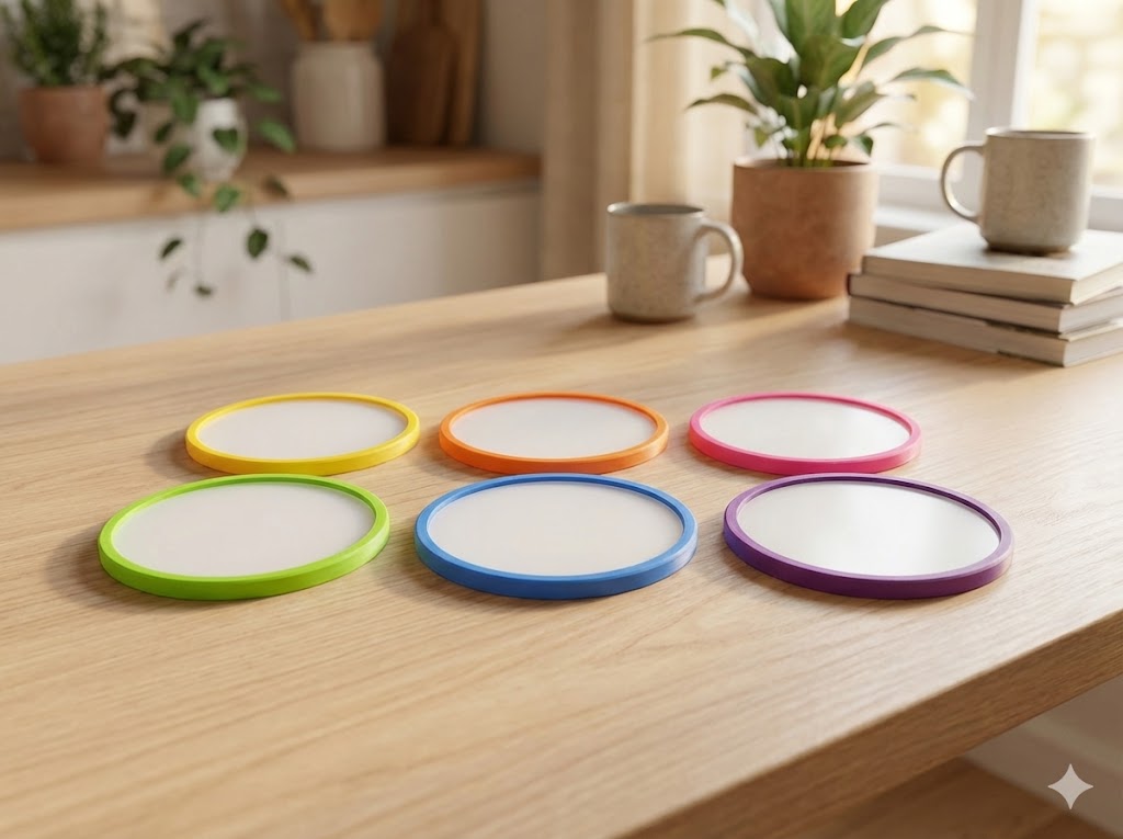Sunumlarınıza enerji katmaya hazır mısınız? Canlı renkleri ve modern tasarımıyla 6'lı Renkli Pleksi Bardak Altlığı Seti, çay ve kahve saatlerinizin vazgeçilmezi olacak.