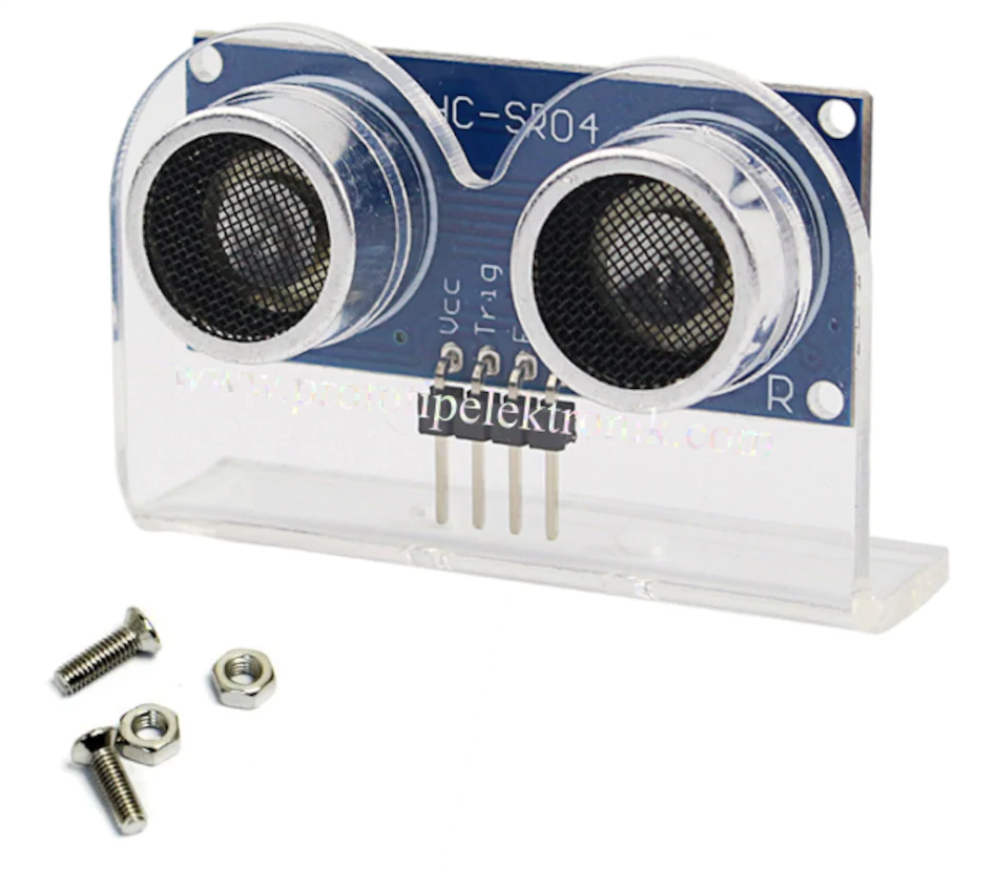 Genellikle şeffaf akrilik (pleksi) malzemeden üretilen bu aparat, robotunuzun estetiğini bozmaz ve sensör bacaklarının (VCC, Trig, Echo, GND) arkadan rahatça bağlanmasına izin verir.