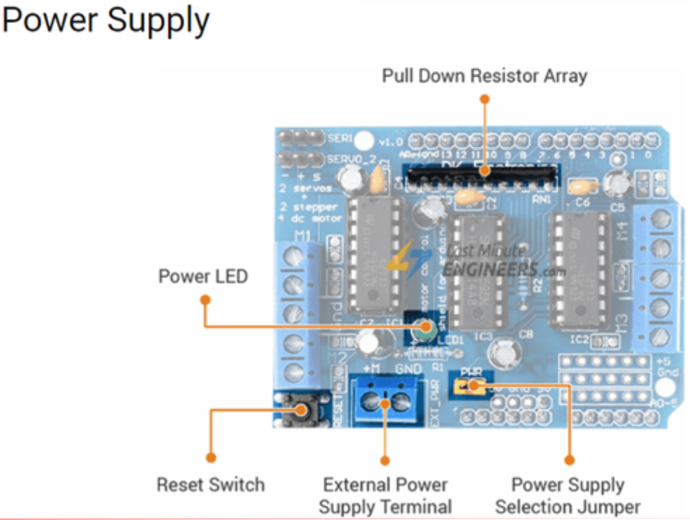 Motorlar yüksek akım çeken bileşenlerdir. Arduino'yu sadece bilgisayara USB ile bağladığınızda motorlarınız dönmeyebilir veya çok yavaş dönebilir.