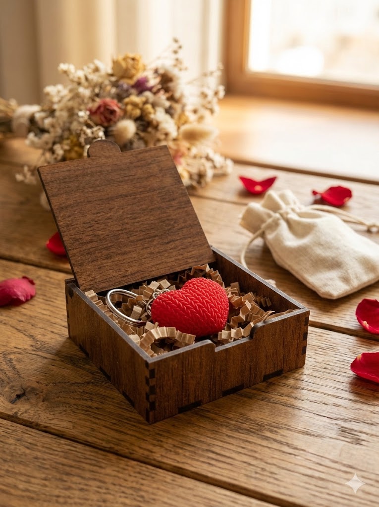 Sıradan bir anahtarlık değil, sunumuyla büyüleyen bir jest... Ürünümüz, kendisine özel tasarlanmış rustik ahşap kutusu içerisinde, koruyucu ve şık kraft dolgu kağıtları (kırpık kağıtlar) üzerinde sergilenerek gelir. Hediye paketi derdi olmadan, doğrudan sevdiklerinize sunabileceğiniz, paketi açıldığı anda "özenle seçilmiş" hissi veren bir tasarımdır.