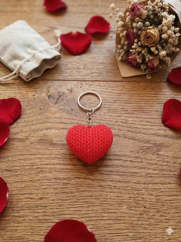 Bu Sevgililer Günü'nde klasik hediyelerin ötesine geçin ve sevgilinize her gün kullanabileceği, baktıkça sizi hatırlayacağı zarif bir armağan verin. Canlı kırmızı rengi ve özel örgü dokulu tasarımıyla dikkat çeken bu kalp anahtarlık, aşkın sıcaklığını ve samimiyetini simgeliyor.