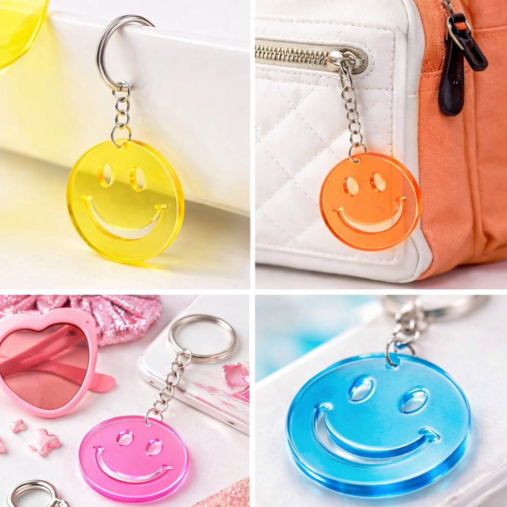 Smile 5 Adet Renkli Şeffaf Pleksi Anahtarlık (Canlı Neon Renkler)