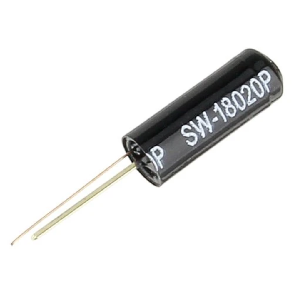 SW-18020P, harici bir devre kartı, potansiyometre veya çip içermeyen, kendi başına çalışan, küçük boyutlu bir Titreşim Anahtarıdır. Temel olarak, içindeki yaylı mekanizma bir darbe veya titreşimle karşılaştığında, iki bacağı birbirine bağlayarak (kısa devre yaparak) bir Dijital Sinyal (ON) üretir.
