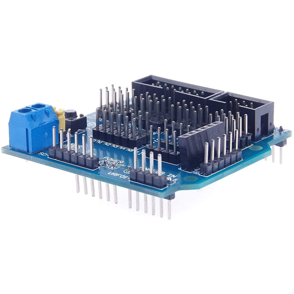Arduino Sensor Shield V5, Arduino Uno üzerindeki tüm dijital ve analog pinleri düzenleyerek her bir pini VCC, GND ve Sinyal (GVS) formatına dönüştüren bir genişletme kartıdır. Bu sayede sensörlerinizi, servo motorlarınızı ve modüllerinizi breadboard (devre tahtası) kullanmaya gerek kalmadan, doğrudan 3 pinli kablolarla karta takabilirsiniz.